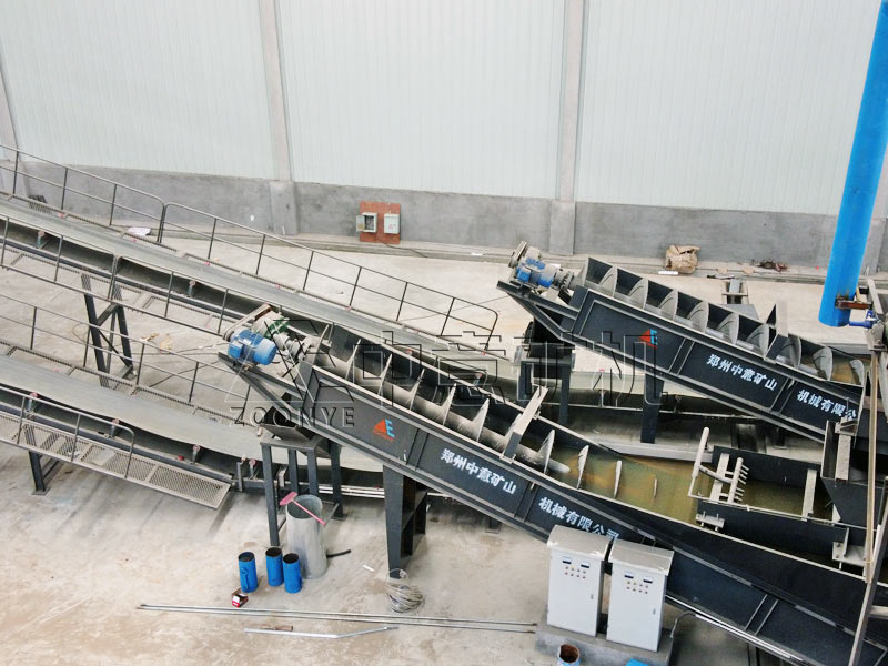 安徽黃山建筑垃圾處理廠,一臺輪胎式移動破碎站矗立在車間門口的位置,滿載而入的垃圾車可直接將物料倒入給料機內進行初次破碎,順著皮帶機向車間內部走去,與破碎設備相連的是一臺滾筒篩和兩臺浮選設備,中間通過除鐵器將鋼筋、鐵絲類金屬分揀出去,以免對設備造成損傷,隨后,經過移動式建筑垃圾處理設備破碎、滾筒篩分選和磁力篩分、水洗,一無是處的建筑垃圾就變成了粗細均勻、大小相同的再生骨料,可達到98%以上的再生利用率。